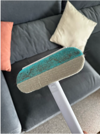 Je účinnější na hladkých nebo krátkovlasých površích, ale může přesto odstranit část dlouhých chlupů.