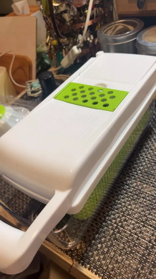 Nej, du kan bruge mandolinen uden skål, direkte over en skål eller et skærebræt.