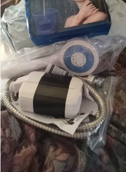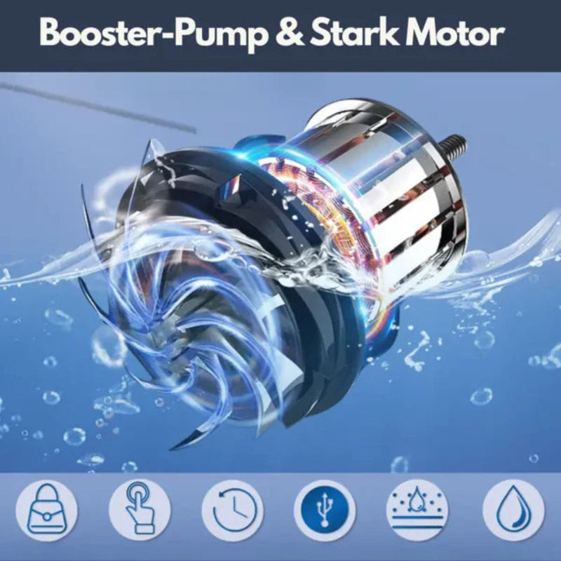 This portable shower is equipped with a rechargeable battery and can operate without electricity once charged.