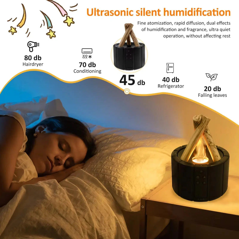 This diffuser in campfire mode creates a soft orange light and a relaxing flame effect. Perfect on the nightstand, it helps you fall asleep in a warm and comforting atmosphere.